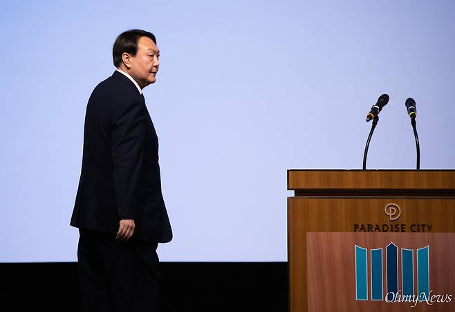 이날 그는 인천 파라다이스시티호텔에서 열린 제29차 마약류퇴치국제협력회의(ADLOMICO)에 참석했다. 8월 27일 압수수색을 시작으로 검찰이 조 장관 관련 의혹 강제 수사에 나선 지 약 한 달만에 처음으로 공개석상에 모습을 드러낸 것이다. 또 이틀 전 검찰총장 지휘권자인 현직 법무부 장관의 자택 압수수색이라는 유례없는 상황이 빚어진 만큼 많은 이들이 윤석열 총장의 입에 주목했다.