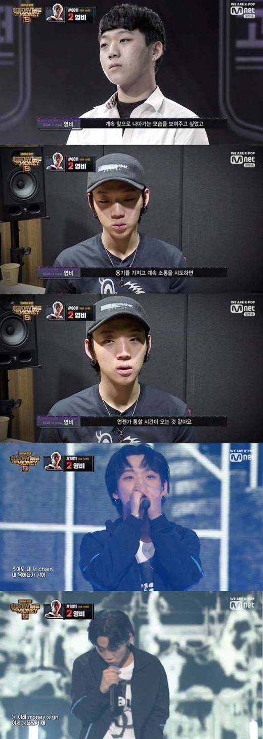 영비는 서동현을 제치고 최종 파이널 무대에 올랐다. 영비는 파이널 곡인 '노 캡'을 준비하며 "17살에 '쇼미더머니'에 나오고 이후 팬이 생겼다. 그런 것을 보면서 감사하다고 생각했다"라고 말했다.
