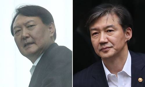 서울대 교수로 재직하던 조 장관은 트위터에 “한 번도 검찰에 대한 대화를 해본 적 없는 윤석열 형(저와 동기이죠), 정직 3개월이 아니라 그 이상의 징계라도 무효”라며 “굴하지 않고 검찰을 지켜주세요. 사표 내면 안 됩니다”라고 덧붙였다. 한 달 뒤엔 “윤석열!”이라고 짧게 남겨 윤 지청장을 향한 애틋한 속마음을 드러냈다. 그랬던 조 장관은 ‘검찰 개혁’의 아이콘, 윤 지청장은 ‘적폐 수사 선봉장’이 돼 각각 법무부와 검찰 조직의 수장이 됐지만 조 장관 가족 의혹 수사가 시작되면서 각자 제 갈 길을 가는 모습이다.