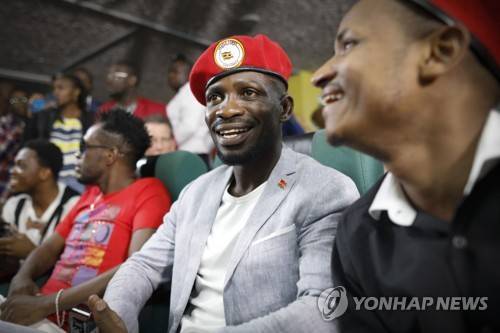 epa07883489 (FILE) - Ugandan musician-turned-MP Bobi Wine (C) smiles as he chats with Kenyan Member of Parliament Babu Owino (R) during a discussion with prominent Kenayn political activist Boniface Mwangi in Nairobi, Kenya, 12 October 2018 (reissued 30 September 2019). Uganda's government on 30 September 2019 banned the red beret from sale or wearing, among other items which resembles the UPDF (Uganda People's Defence Force) army uniform. The red beret had become a trademark of Bobi Wine, a pop star turned politician who has announced he is running for president against longtime leader Museveni. EPA/DAI KUROKAWA *** Local Caption *** 54696368