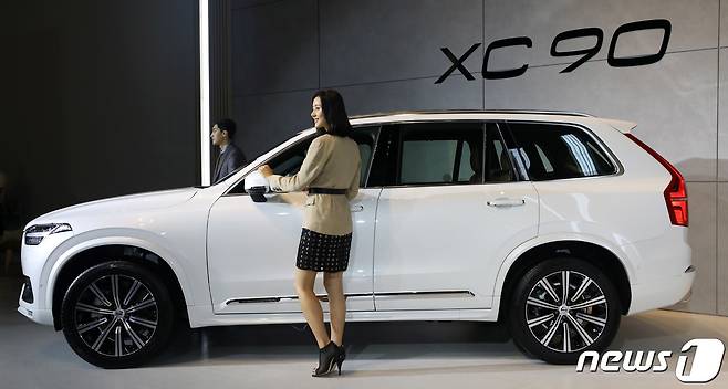 (서울=뉴스1) 이동해 기자 = 1일 서울 강남구 서울옥션 강남센터에서 모델들이 볼보의 플래그십 SUV, XC90을 선보이고 있다. XC90은 브랜드 헤리티지를 현대적으로 해석한 디자인과 인간중심 철학을 반영한 감성품질, 안전의 노하우를 기반으로 한 첨단 안전기술을 집대성한 볼보의 핵심 차종으로 D5 디젤엔진과 T6 가솔린 엔진, T8 플러그인하이브리드 엔진과 8단 변속기 조합으로 출시됐다. 특히 7인승 모델을 기본으로 동급 모델에서 유일하게 4인승 옵션을 제공, 가격은 트림에 따라 8,030만원부터 1억 3,780만원으로 기존과 동일하게 책정됐다. 2019.10.1/뉴스1