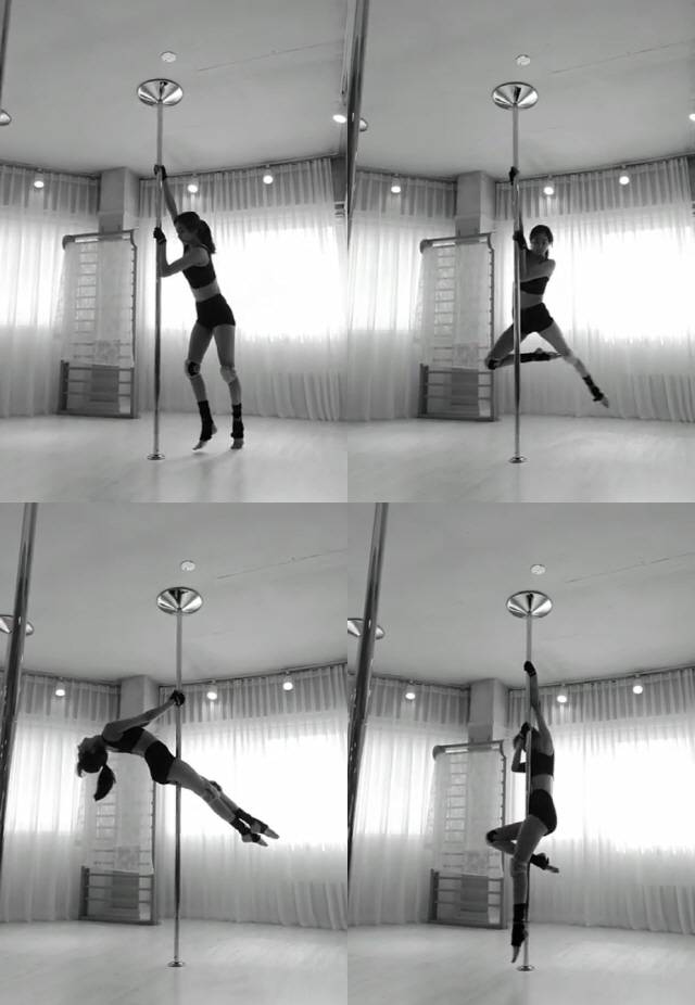 사진 속 유이는 군살 하나 없는 늘씬한 몸매를 드러낸 채 폴댄스에 집중하고 있는 모습.