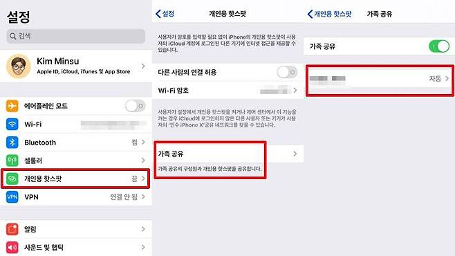 무제한 요금제가 있다면 핫스팟 '가족 공유' 기능은 편리하다. 특히 자녀나 부모님의 부족한 데이터를 메꿔줄 수 있기 때문이다. 하지만 iOS의 핫스팟 기능은 매번 사용자 접속을 확인해주어야 했다. 하지만 애플 ID로 등록된 가족이라면 언제든 매번 허가 필요없이 가족 구성원의 요청이 있으면 자동으로 연결할 수 있다.