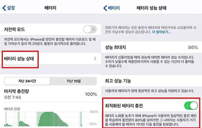 4) 최적화된 배터리 충전 활성화