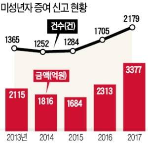 5년간 평균치 또한 미성년자가 1억4522만원으로 성인(1억3139만원)보다 많았다.