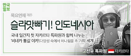 ※ 인사할 때마다 상대를 축복(슬라맛)하는 나라 인도네시아. 2019년 3월 국내 일간지로는 처음 자카르타에 상주 특파원을 파견한 <한국일보>는 격주 목요일마다 다채로운 민족 종교 문화가 어우러진 인도네시아의 ‘비네카 퉁갈 이카(Bhinneka Tunggal Ikaㆍ다양성 속에서 하나됨을 추구)’를 선사합니다.