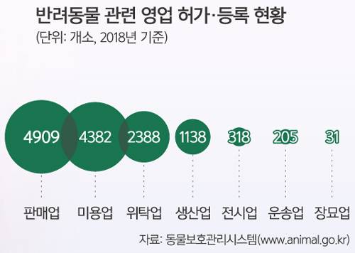 반려동물 서비스업의 성장 가능성은 무궁무진하다. KREI는 2017년 10월 발간한 ‘반려동물 연관산업 발전방안 연구’ 보고서에서 “반려동물 및 관련용품 소매업 사업체 수는 2014년 4099개, 종사자는 6974명, 매출액은 3849억원으로 각각 연평균 12.3%, 14.6%, 10.2% 증가했다”고 밝혔다.
