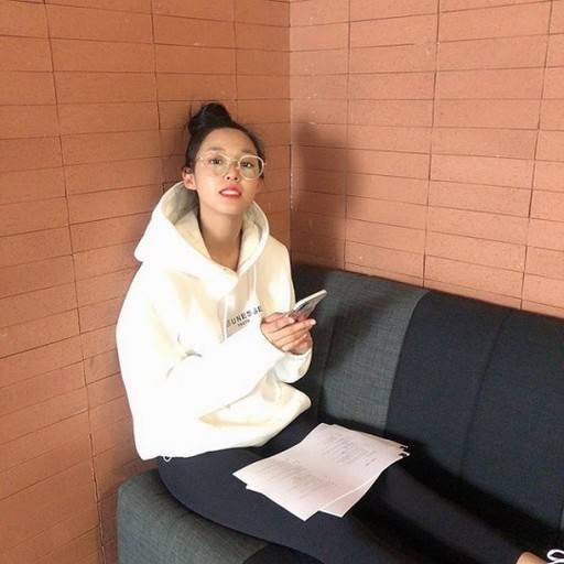 공개된 사진 속 설현은 폭신한 소파에 앉아 발을 뻗고 있으며 휴대전화에 집중하는 모습이다.