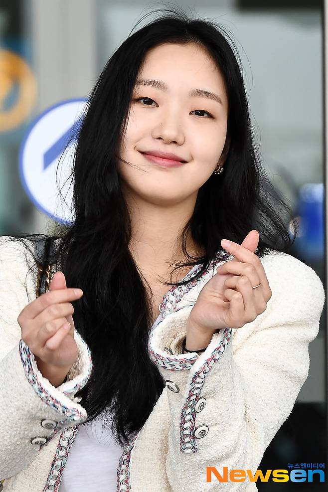 배우 김고은이 공항패션을 선보이며 프랑스 파리로 출국하고 있다.