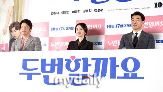 '두 번 할까요'는 생애 최초 이혼식 후, N차원 와이프 선영(이정현)에게서 겨우 해방된 현우 (권상우) 앞에, 선영이 이번에는 옛 친구 상철(이종혁)까지 달고 다시 나타나면서 벌어지는 싱글라이프를 다룬 코믹 로맨스물이다. 오는 17일 개봉.