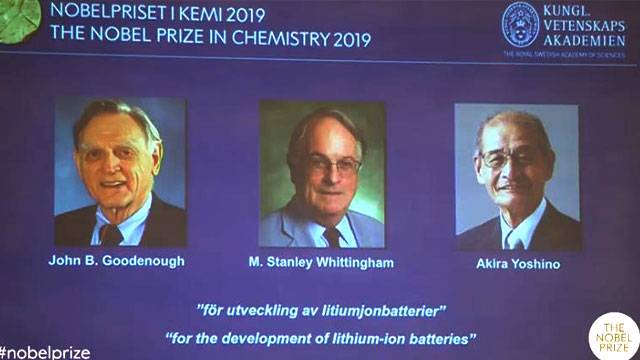 올해 노벨화학상은 미국의 존 구디너프와 영국의 M. 스탠리 휘팅엄, 일본의 요시노 아키라 등 3명의 화학자가 공동 수상했습니다.