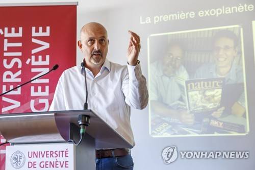 Astrophysicist Francesco Pepe, director of the Geneva Observatory, comments the Nobel Prize awarded to Swiss astrophysicist Michel Mayor and Swiss astrophysicist Didier Queloz from the university of Geneva during a press conference at the university of Geneva in Geneva, Switzerland, Tuesday, Oct. 8, 2019. The Nobel Prize in Physics has been today jointly awarded to James Peebles, Michel Mayor and Didier Queloz. One half of the prize was awarded to Peebles for "theoretical discoveries in physical cosmology," and the other half to Mayor and Queloz for "the discovery of an exoplanet orbiting a solar-type star". (Salvatore Di Nolfi/Keystone via AP)