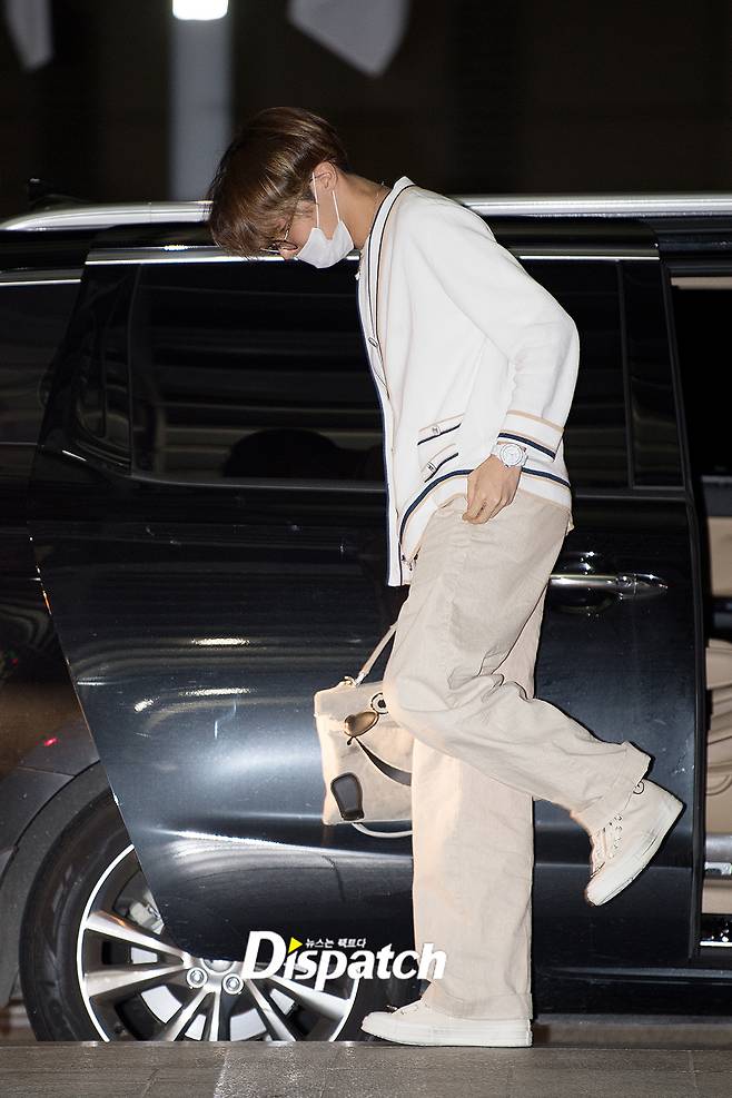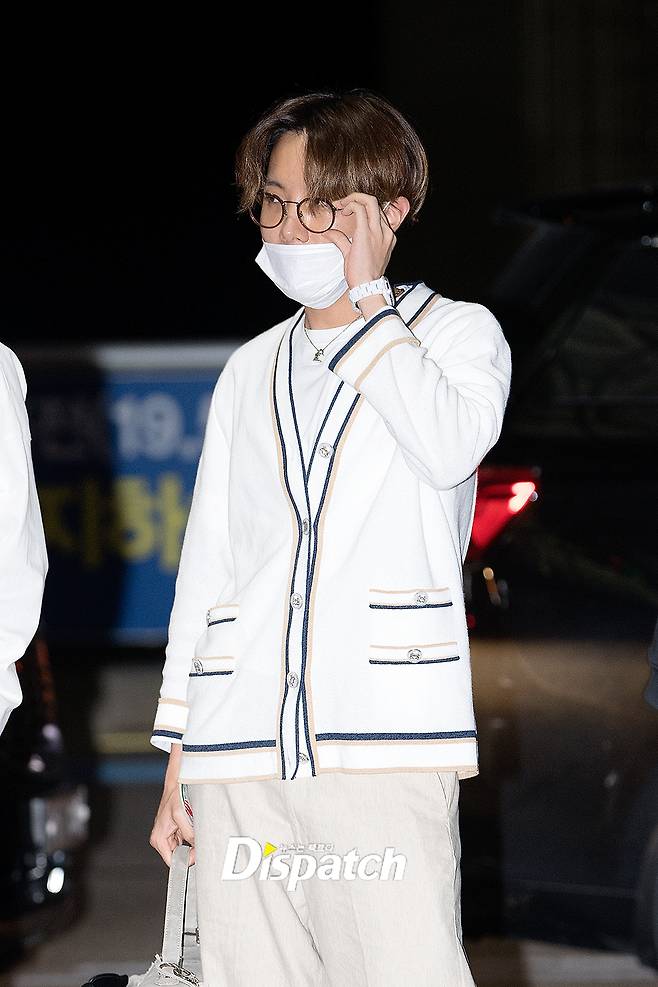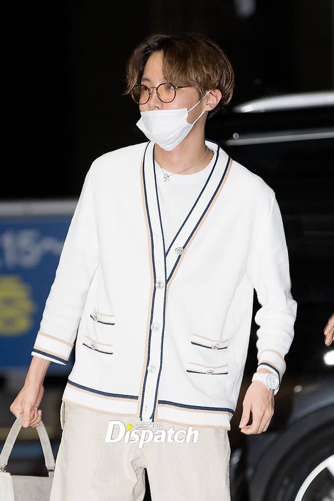 '방탄소년단' 제이홉은 이날 베이지 팬츠에 가디건을 매치해 훈훈한 공항패션을 연출했다. 남다른 패션 감각으로 시선을 사로잡았다.