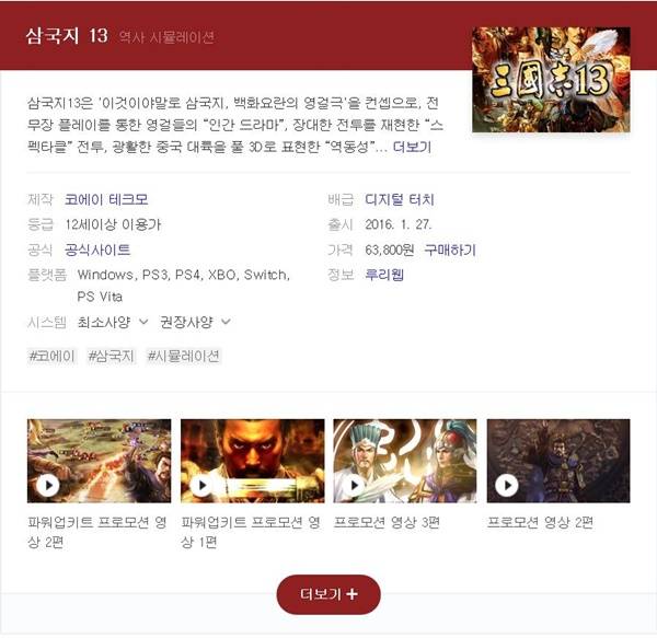 | [삼국지 14] https://store.steampowered.com/app/872410/ROMANCE_OF_THE_THREE_KINGDOMS_XIV/?snr=1_7_7_151_150_1 |