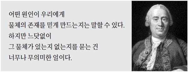 "어떤 원인이 우리에게 물체의 존재를 믿게 만드는지는 말할 수 있다. 하지만 그 물체가 있는지 없는지를 묻는 건 무의미한 일이다."