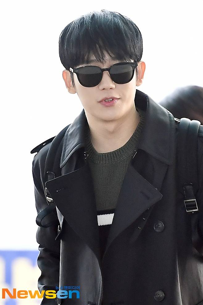 배우 정해인(JUNG HAE IN)이 공항패션을 선보이며 미국 뉴욕으로 출국하고 있다.