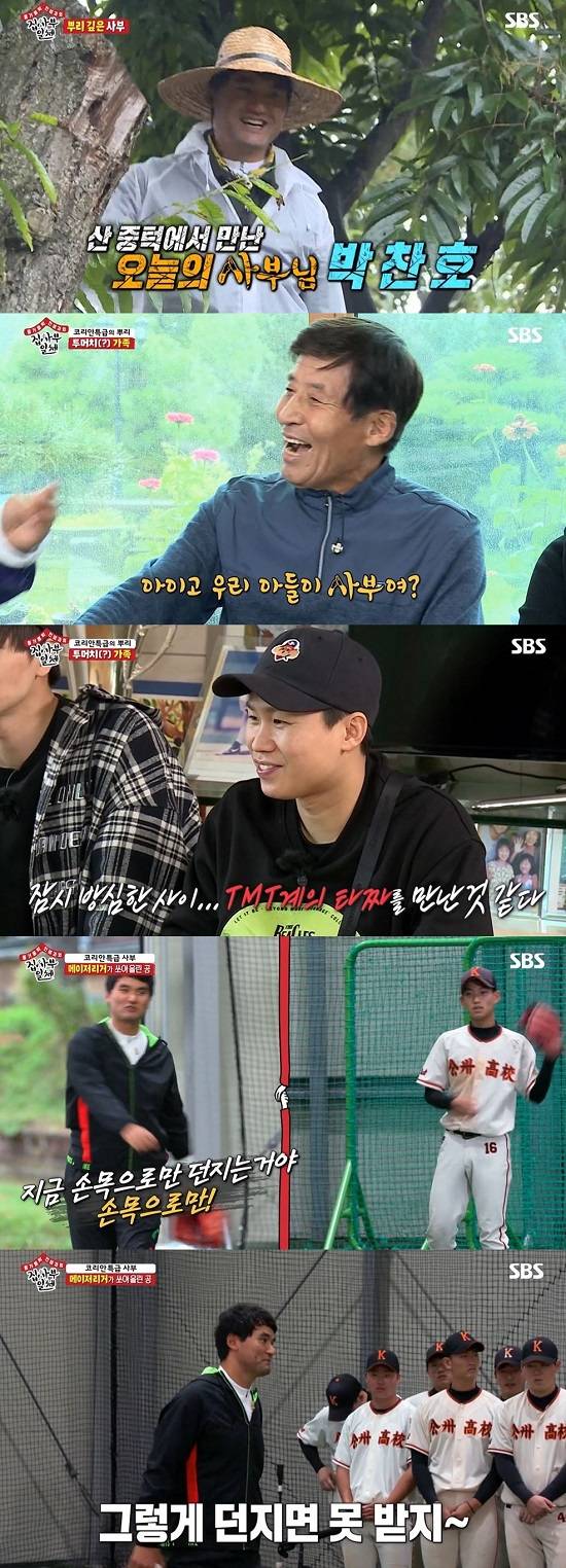이날 제작진은 "이번 사부는 뿌리를 굉장히 중요하게 생각하는 분이다. 그래서 그 분의 고향인 공주에 왔다"며 사부에 대한 힌트를 제공했다. 이내 등장한 사부는 대한민국 야구계의 살아있는 레전드인 박찬호였고 멤버들은 그의 등장에 놀라움을 감추지 못했다.