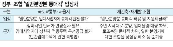 정비사업에서 '일반분양분 통매각'을 놓고 정부와 재건축·재개발 조합 간 갈등이 커지고 있다.