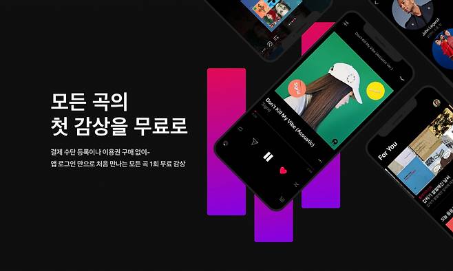 VIBE 앱에 로그인만 하면 VIBE가 보유한 모든 음원을 1회 무료로 감상해볼 수 있다. 음원 라이브러리 전체를 무료로 개방하는 시도는 국내 음원 서비스 중 VIBE가 최초다.