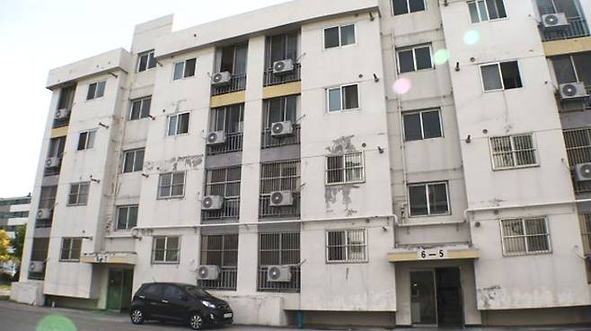 지휘관을 제외한 다른 직업 군인들의 숙소는 어떨까, 대부분 40년 가까이 된 노후 아파트들입니다.