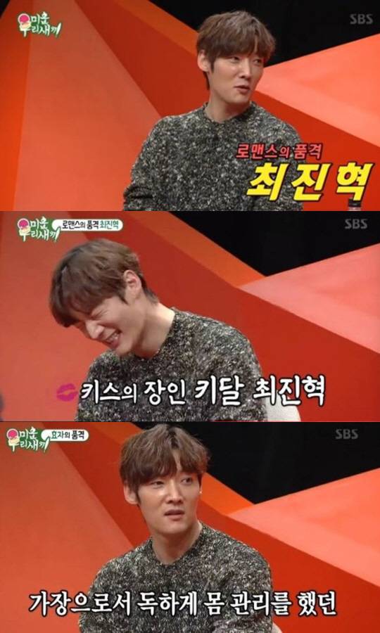 최진혁은 '키스를 너무 잘하고 자주 한다'는 칭찬에 "한 회당 매번 키스신이 있었다. 요즘엔 화면에 다 드러나기 때문에 진짜로 한다"며 민망해했다. 이어 "처음엔 쑥스럽지만, 적응되면 스태프가 보이지 않는다. 현장에 (여배우와)둘만 있는 것 같다"면서 "키스 후 여배우에게 감정이 생긴 적도 있다. 사람대 사람이 만나는 것이기 때문"이라고 고백했다.