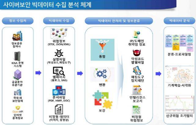KISA는 지난해 12월 사이버보안빅데이터센터를 개소, 운영하고 있다. 지난달까지 IP·도메인, 악성코드, 취약점 등 총 5억3천만여건의 정형·비정형 데이터를 수집했다. 연말까지는 데이터 수집 건수가 6억건을 넘을 것으로 전망하고 있다.
