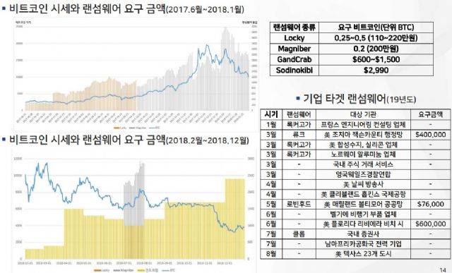 암호화폐 시세에 따라 랜섬웨어 요구 금액이 변동되는 것도 그래프로 확인할 수 있었다.