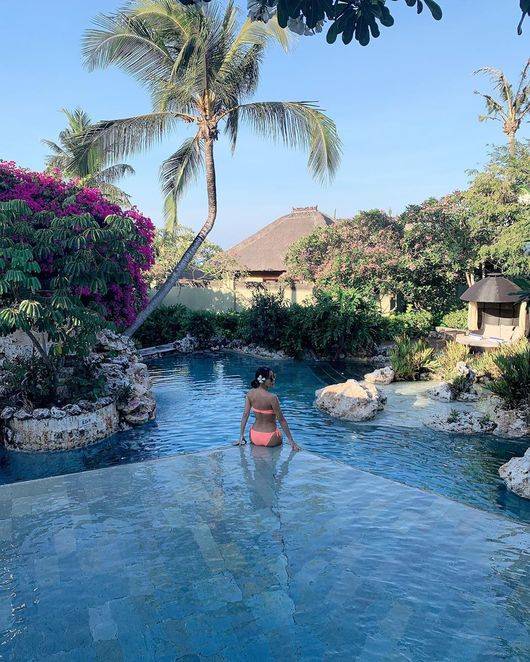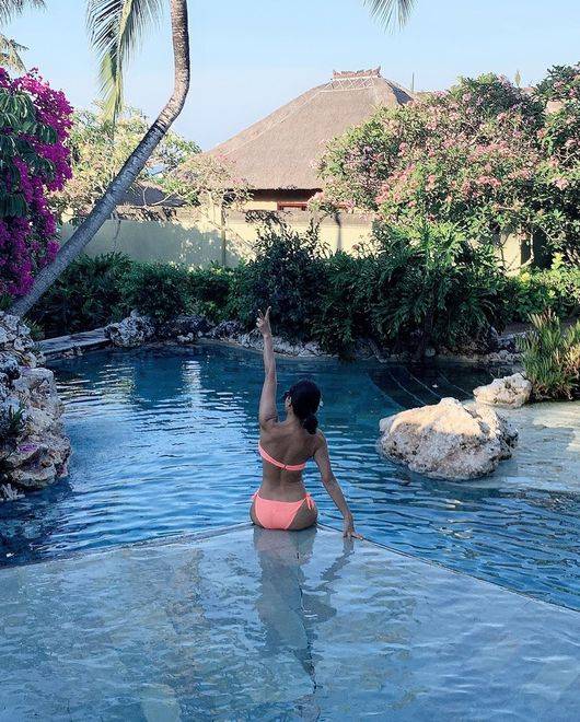 사진 속에는 발리 여행 중인 미나가 수영복을 입고 수영을 즐기고 있는 모습이 담겼다.