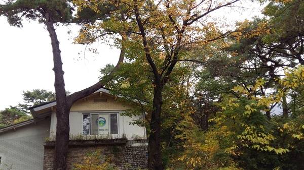 | ▲ 규봉암 가는 길의 초입에 60~70년대 신혼 여행지로 각광받았던 옛 산장 호텔이 폐허의 쓸쓸함을 설하고 있다 |