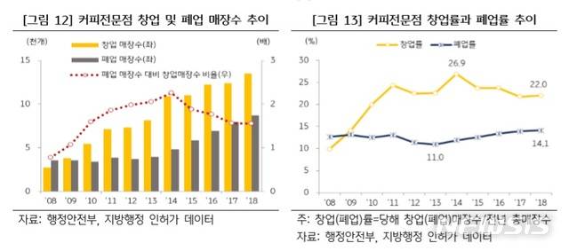 지난해 창업한 커피숍 수는 1만4000곳에 달했지만 문을 닫은 곳도 9000곳이나 됐다.