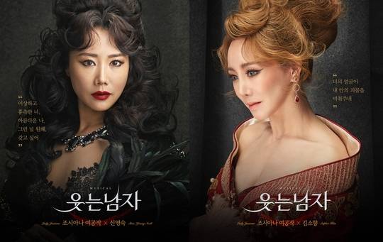 한편, 신영숙과 김소향은 압도적인 카리스마를 뿜어내는 눈빛과 관능적인 분위기로 여왕의 이복동생으로 부유하고 매혹적인 조시아나 여공작을 십분 표현해내 눈길을 끈다. 뮤지컬 ‘엘리자벳’ 등에 출연해 소름 끼치는 가창력을 뽐내며 뮤지컬 여제로 자리잡은 신영숙과 최근 뮤지컬 ‘마리 앙투아네트’에서 자신만의 아우라로 뮤지컬 계에서의 독보적인 위치를 구축한 김소향은 뮤지컬 ‘웃는 남자’를 통해 가장 매력적인 여성 캐릭터를 다시 한 번 피로할 예정이다.
