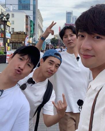 공개된 사진에는 김민식과 함께 시베리아 횡단열차를 탔던 tvN 예능프로그램 '시베리아 선발대'의 배우 이선균, 김남길, 이상엽, 고규필이 담겨 있다.