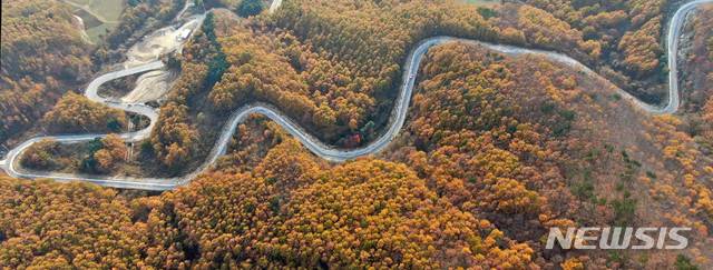 【서울=뉴시스】 11일 경남 거창군 고제면 개명리 빼재고개에 올가을 마지막 단풍이 물들어 만추의 아름다운 경관을 뽐내고 있다. (사진=거창군 제공) 2019.11.11.