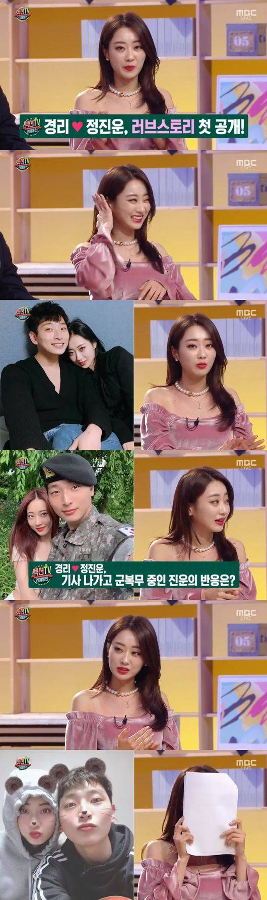이어 비밀 연애를 하기 힘들었을 텐데란 질문에 경리는" 따로 숨기진 않았다. 그런데 다들 친구라고 생각하신 것 같다"라고 전했다. 이어 군복무 중인 진운의 반응을 물었고 경리는 "2년 사귀다 보니 언젠가 이런 일이 생길 줄 알았다. 덤덤하게 받아들이더라. 그리고 바로 인정하자고 했다"고 말했다.