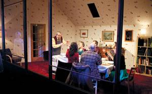 무대 위 집 안을 창문 너머로 들여다보는 형식인 연극 '인테리어즈'는 관찰자의 시점과 목소리를 빌려 집 내부의 소리를 관객에게 전달한다. 어느 겨울날, 아늑한 불빛이 감도는 외딴집에서 친구들이 벌이는 즐거운 파티로 이야기가 시작된다. 행복하게만 보이는 겉모습과 달리 등장인물들의 생각이 적나라하게 드러난다. 액자식 무대 구성으로 신비한 분위기를 연출한다. 17일까지 서울 명동예술극장.
