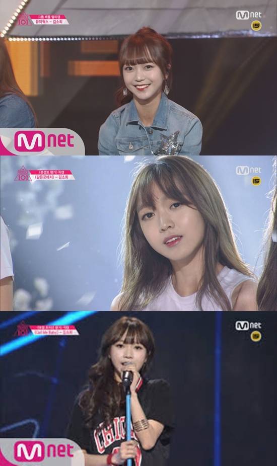 2016년에는 뮤직웍스 출신 연습생으로 '프로듀스 101'에 참가, 가수를 향한 도전을 이어가게됩니다. '프로듀스 101'에서는 씨스타의 'Push Push', 엑소의 'Call Me Baby' '같은곳에서' 등의 무대를 선보였는데요. 꾸준히 준수한 성적을 거두던 김소희는 '같은곳에서' 무대를 통해 팀내 1위를 차지하며 상승세에 불을 지폈습니다.
