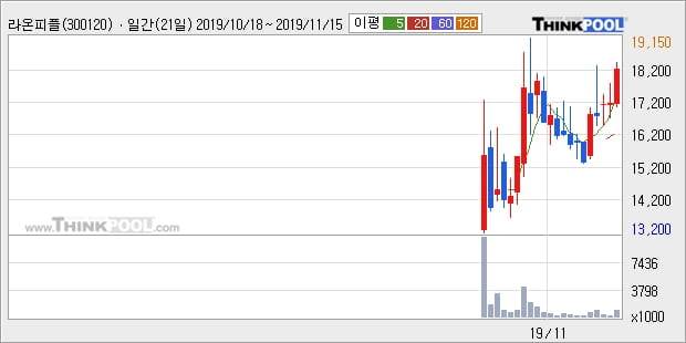 '라온피플' 52주 신고가 경신, 주가 상승 흐름, 단기 이평선 정배열, 중기 이평선 역배열