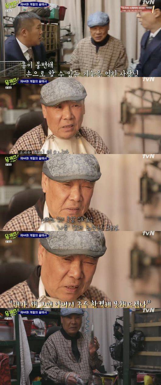 계절의 끝에서 MC 유재석과 조세호가 경기도 이천으로 향했다. 특히 이천 출신인 임창정을 떠올리며 동네를 살펴보던 중 구두수선 장인을 우연히 만났다.그는 외길 40년을 걸어왔다면서 구두인생을 전했다.