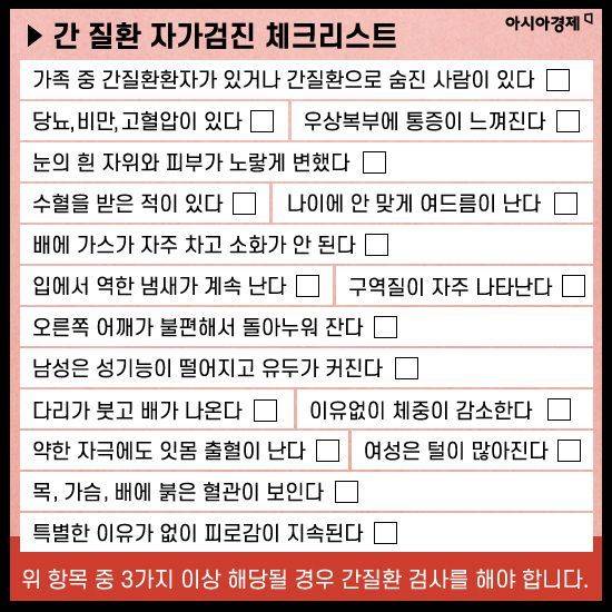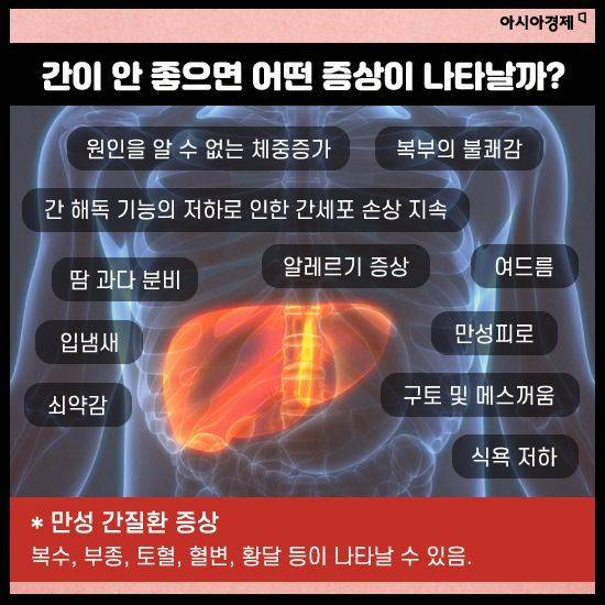 따라서 간이 안 좋다고 느끼고 나면 이미 증상이 꽤 진행된 경우가 많아 꾸준히 간 건강에 신경쓰는 것이 중요합니다.