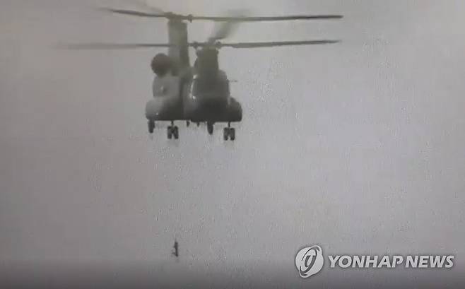 마라도 해상서 구조하는 공군 헬기