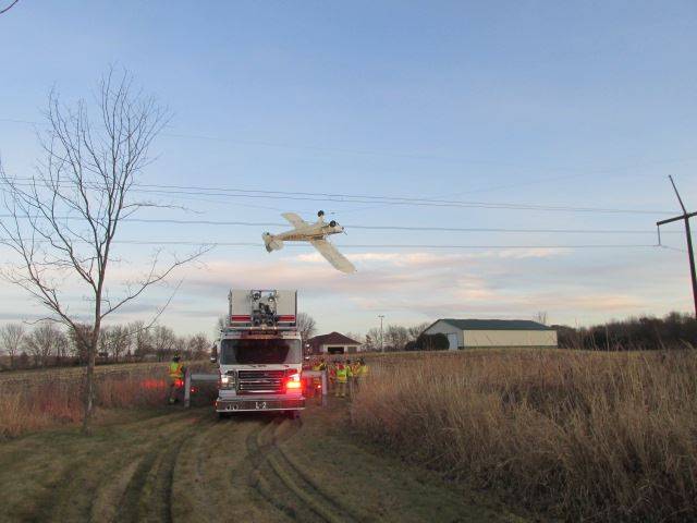 스콧 카운티 보안관사무소는 이날 3시 50분쯤 섀코피 인근을 비행하던 단일 프로펠러 비행기가 전깃줄 다발에 걸려 거꾸로 매달리는 상태가 됐다고 밝혔다.