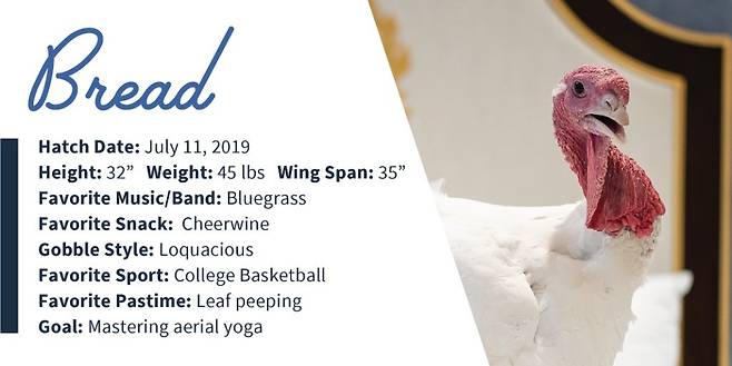 ![미국 추수감사절 칠면조 사면식에 선택 받은 칠면조 브레드와 버터가 25일(현지시간) 워싱턴 윌라드 인터컨티넨탈 호텔 기자회견장에 모습을 나타냈다. [EPA=연합뉴스]](https://img3.daumcdn.net/thumb/R658x0.q70/?fname=https://t1.daumcdn.net/news/201911/26/joongang/20191126161328401cwrv.jpg)