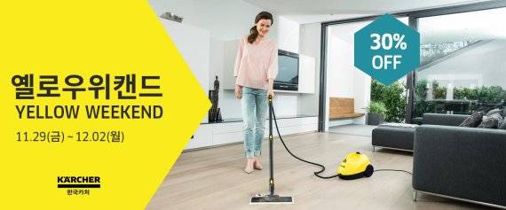 독일 청소장비 기업 카처가 오는 12월 2일까지 카처 공식 온라인몰 이용자를 대상으로 '옐로우 위캔드(Yellow Weekend)' 프로모션을 진행한다고 29일 밝혔다.