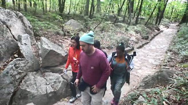 금강산 등반에 나선 관광객은 사실상 이들이 유일해 보였습니다.
