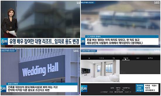 2일 SBS '8시 뉴스'는 "'유명 배우 참여' 대형 리조트가 다세대 주택?"이라는 제목의 보도로 눈길을 끌고 있다.