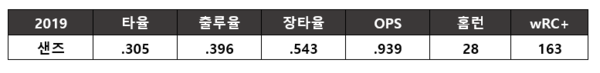 2018 시즌 초이스의 대체 외국인으로 들어온 샌즈가 시즌 말미에 엄청난 활약을 보였지만 팬들은 의심의 눈초리를 거두지 못했다. 초이스도 2017 시즌 말 선전해 재계약에 성공했으나 이듬해에는 부진을 거듭하다 퇴출당했기 때문이다.