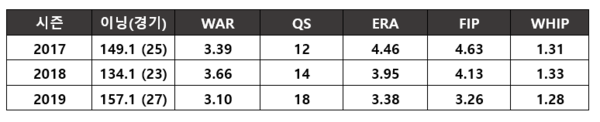 한때 키움의 토종 선발진은 그야말로 전멸이었다. 한국시리즈에 진출한 2014시즌에도 외국인 선발 2명을 포함한 3인 선발 로테이션을 가동했을 정도였다. 그럭저럭 괜찮았던 불펜과 극명하게 대조되는 허약한 선발진은 키움의 오랜 약점이었다.