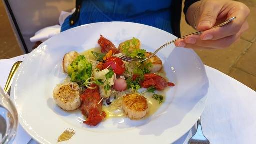 와인 리스트를 살펴보니 아주 반가운 와이너리가 눈에 쑥 들어옵니다. 전날 콜마르 여행때 방문했던 ‘알자스 오가닉 와인의 선구자’ 구스타브 로렌츠(Gustave Lorentz). 실바너(SYLVANER) 1병을 주문합니다. 적당히 차갑게 칠링된 와인을 한모금 넘깁니다. 좋은 산도와 부드러운 목넘김, 풍부한 과일향과 아로마틱한 허브향이 피로를 씻어주며 여행의 낭만을 더합니다.