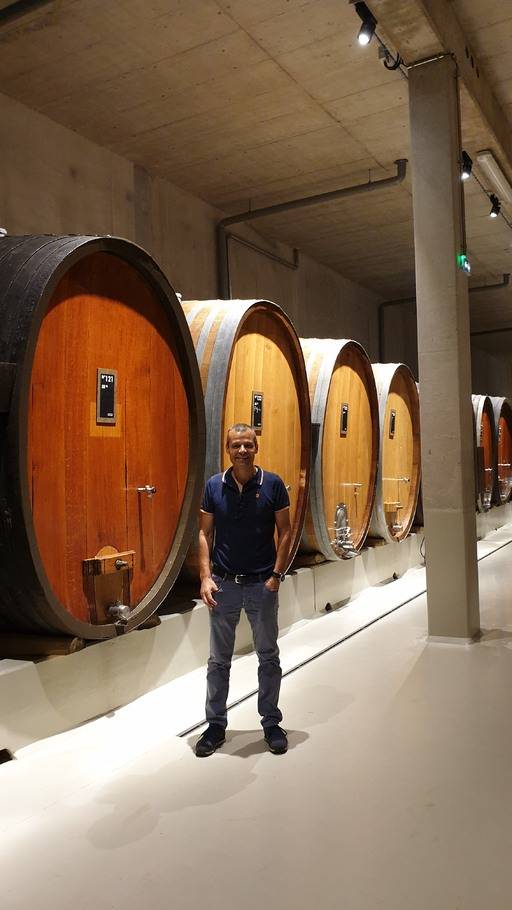 조지를 따라 셀러로 내려갑니다. 현대화된 셀러 시설이 눈에 띄는데 2015년 700만유로를 투자해 최신식 셀러로 교체했다고 하네요. 와인발효에 사용하는 스테인리스 탱크 60개가 줄지어 서있는데 이 정도면 아주 많은 수준입니다. 대형 오크통 푸드르에서는 와인이 익어갑니다. “알자스 와인의 특징은 신선함인데 오크의 향을 넣지 않고 와인을 숙성하기 위해 여러차례 사용한 푸드르를 사용하죠. 이쪽으로 와 보세요. 이 통은 7만8000리터짜리 푸드르인데 1938년에 만들었다는 숫자 적혀 있어요. 아직도 이 푸드르를 쓰고 있답니다. 이런 푸드르가 26개정도 있어요. 오크통은 오래되면 나무향은 아예 없어져서 중성적인 특징을 지니게 된답니다. 공기를 미세하게 투과해서 미세하게 산화를 일으키는데 덕분에 와인의 질감과 향이 바뀌게 되죠. 좀더 숙성된 느낌을 부여하게 된답니다”.