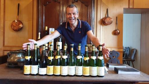 “보통 알자스 크랑크뤼는 알코올 도수가 12.5도인데 구스타브는 아주 잘 익은 포도로 만들기에 알코올 도수는 14도 이상 나온답니다. 그랑크뤼는 최소 10년은 숙성시켜야 제대로 풍미를 발산해요. 화이트 와인이지만 20∼30년도 잘 버티죠. 가장 맛있게 먹으려면 인내심이 좀 필요해요. 이 와인은 앞으로 5년 뒤에는 더 맛있어 질거에요. 잘 보관하고 있을테니 그때 다시 꼭 찾아 주세요”.